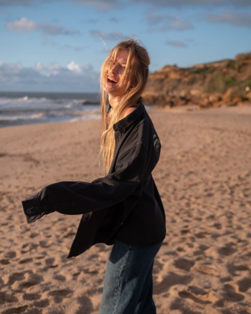 Košile je true size, jemně oversized. Je s efektem “seprané černé” barvy. Ultimátně univerzální kousek kolekce!