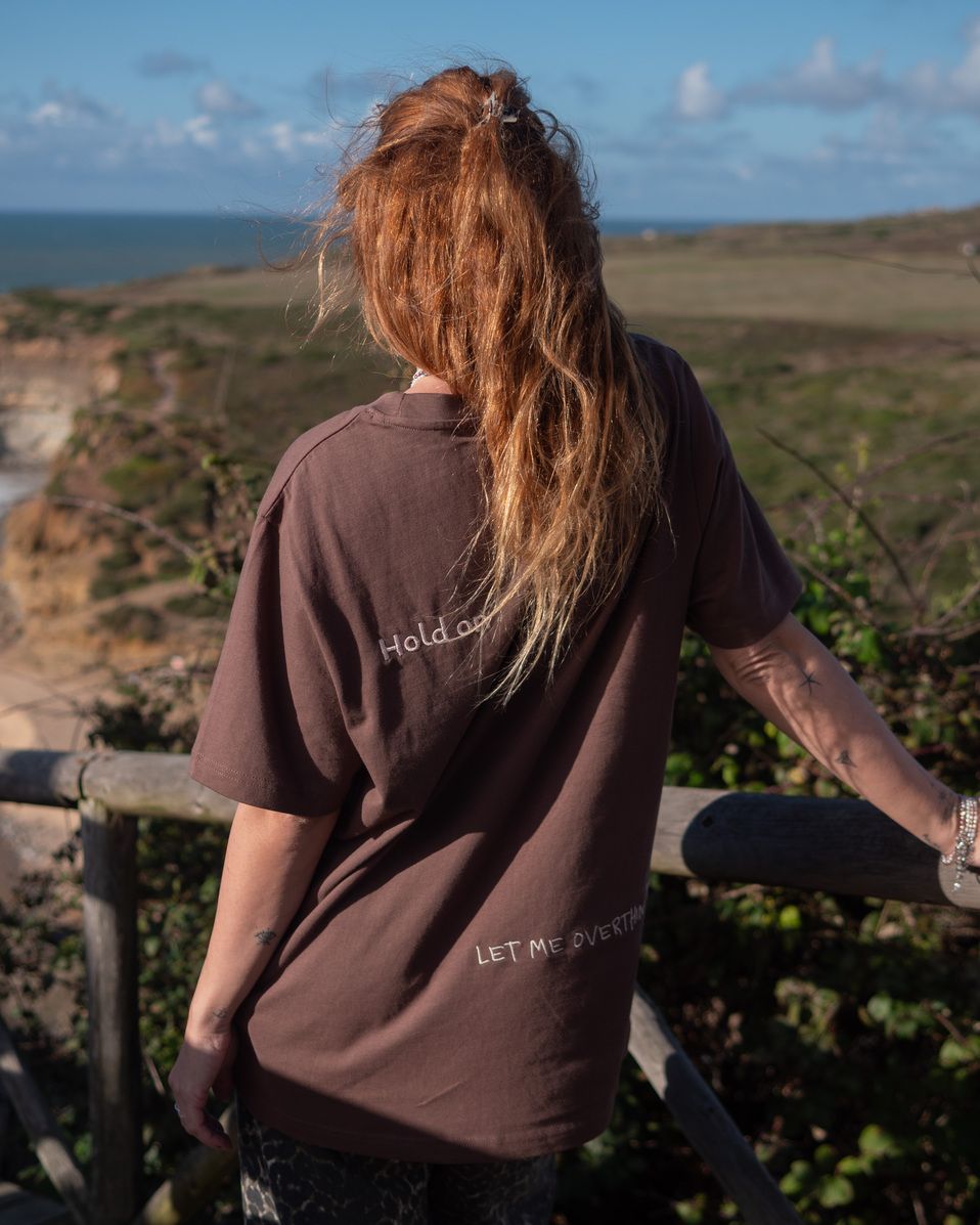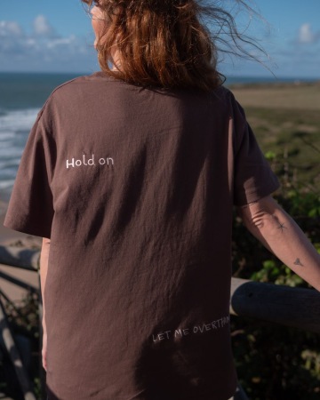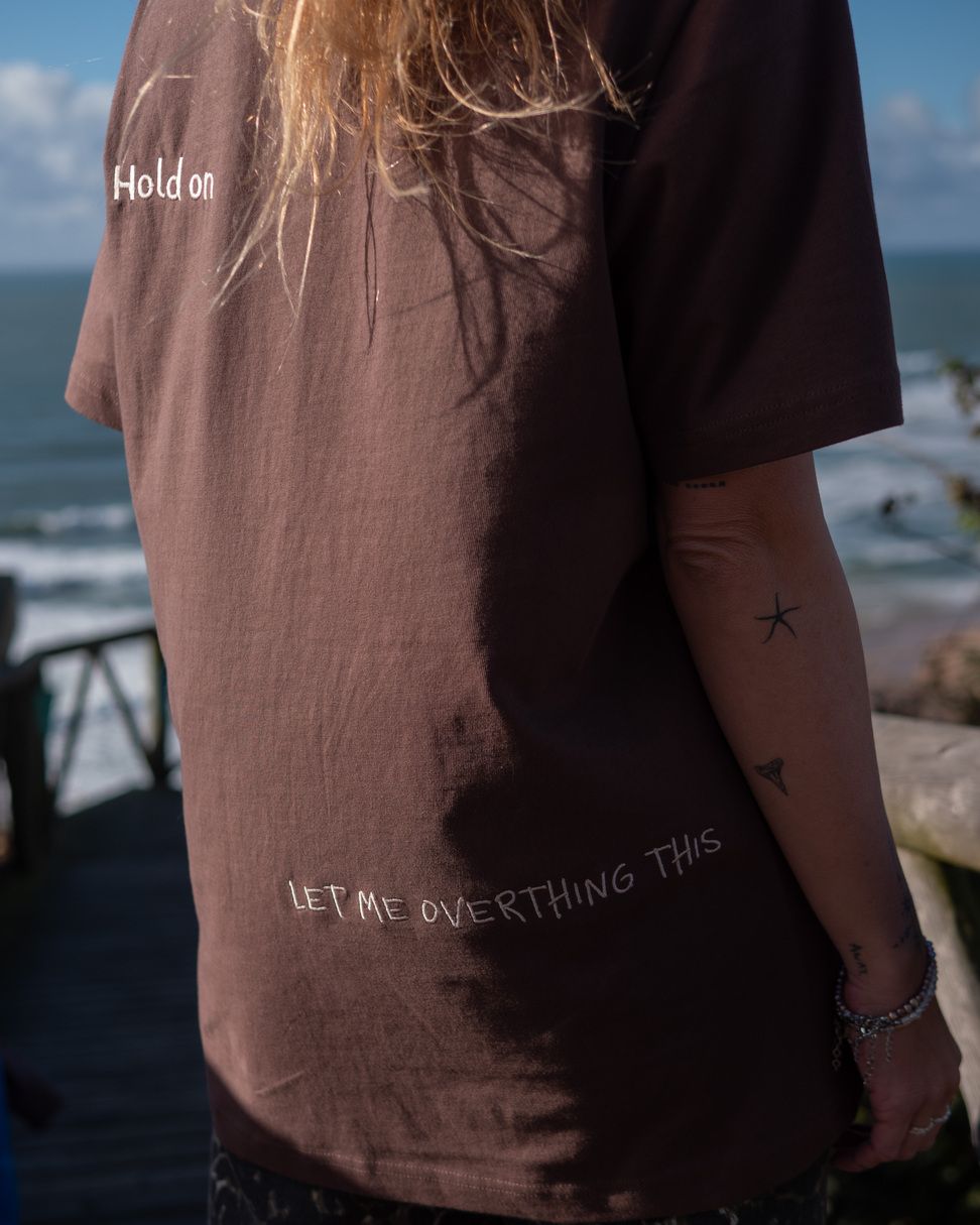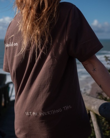 Jemné prodloužené vzdušné tričko s nápisem “Hold on, let me overthink this”. Mluví za vše!