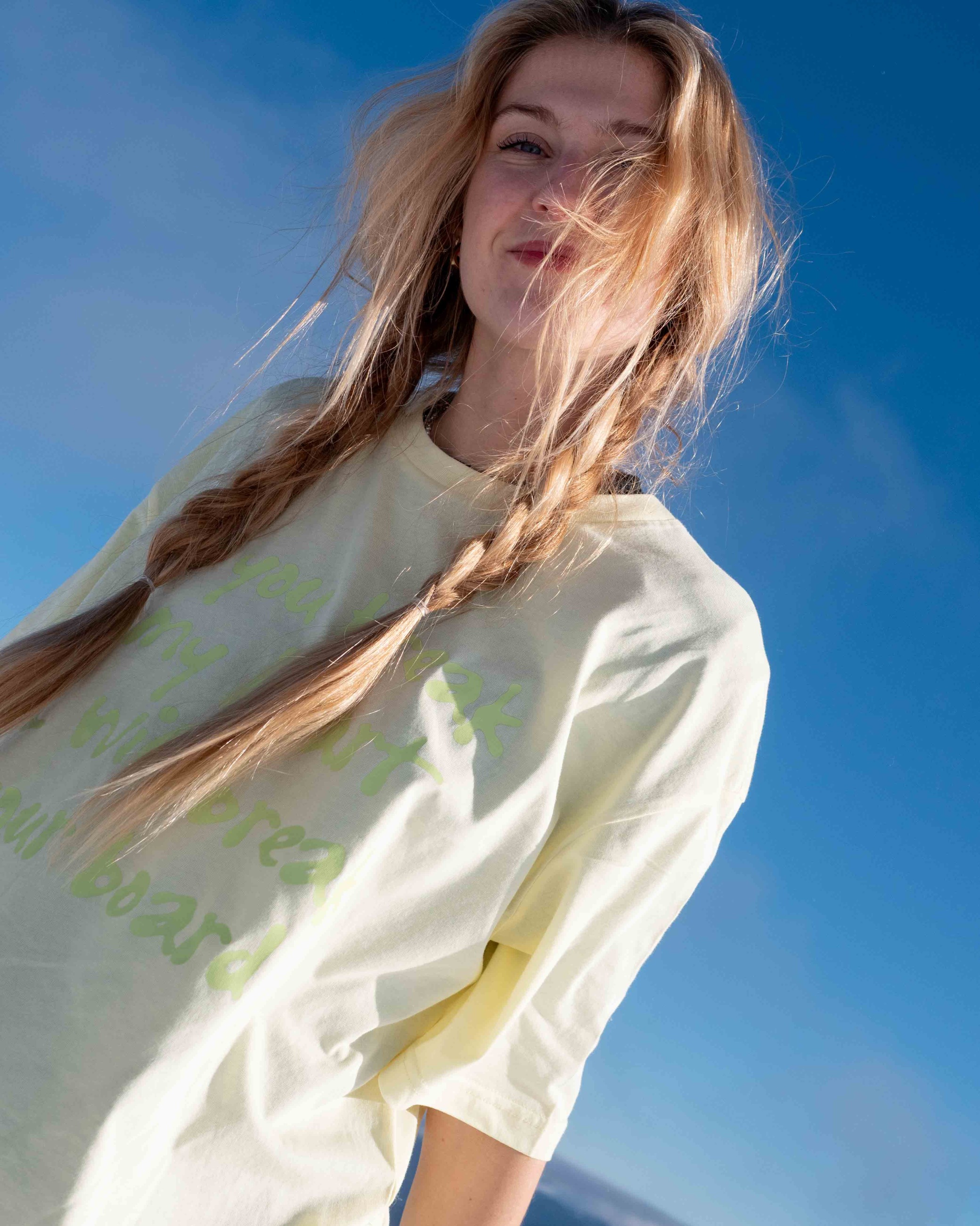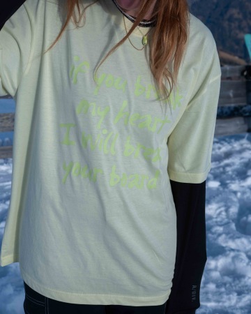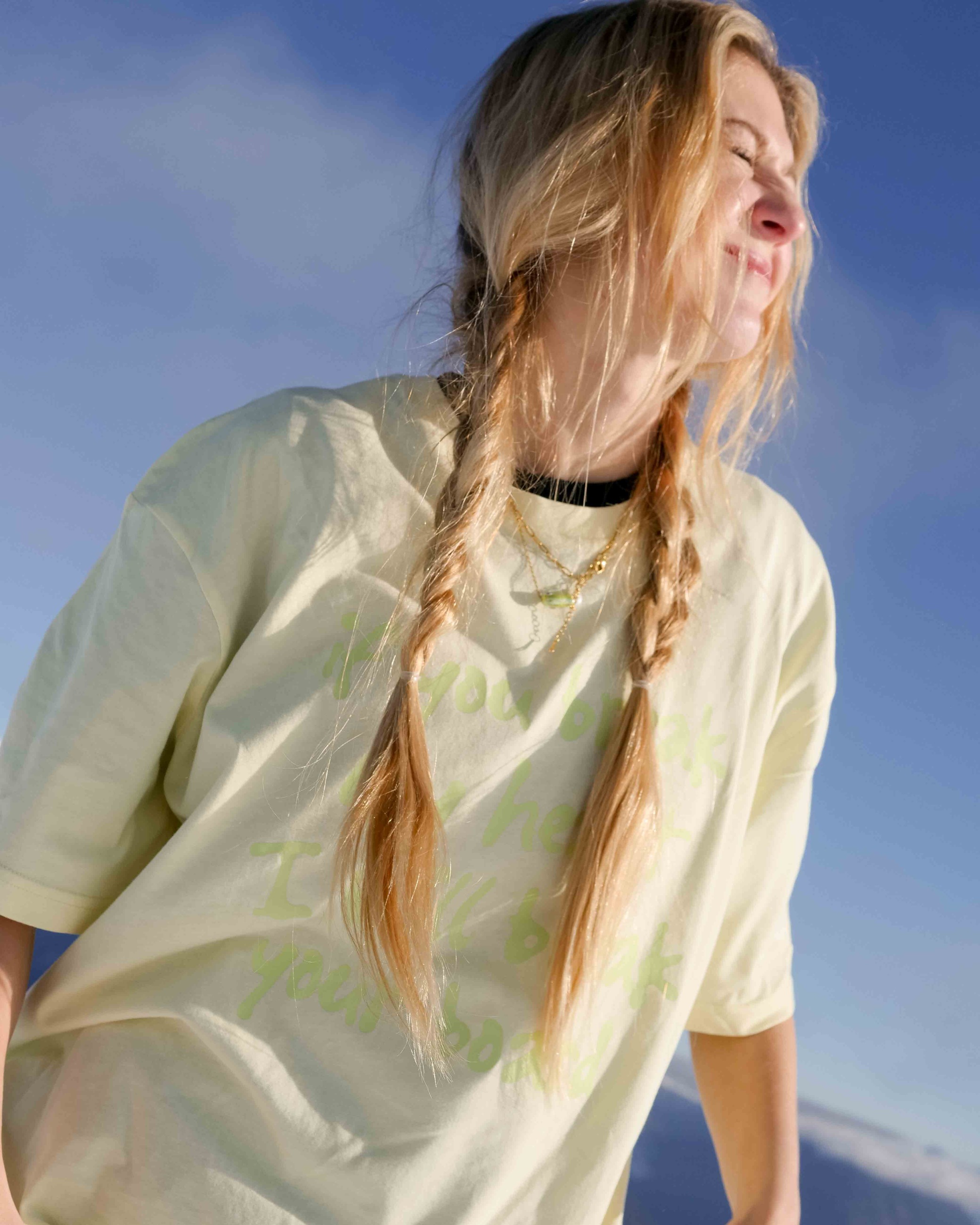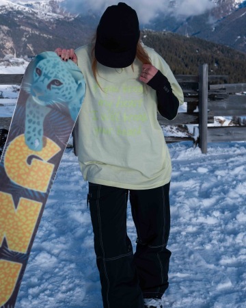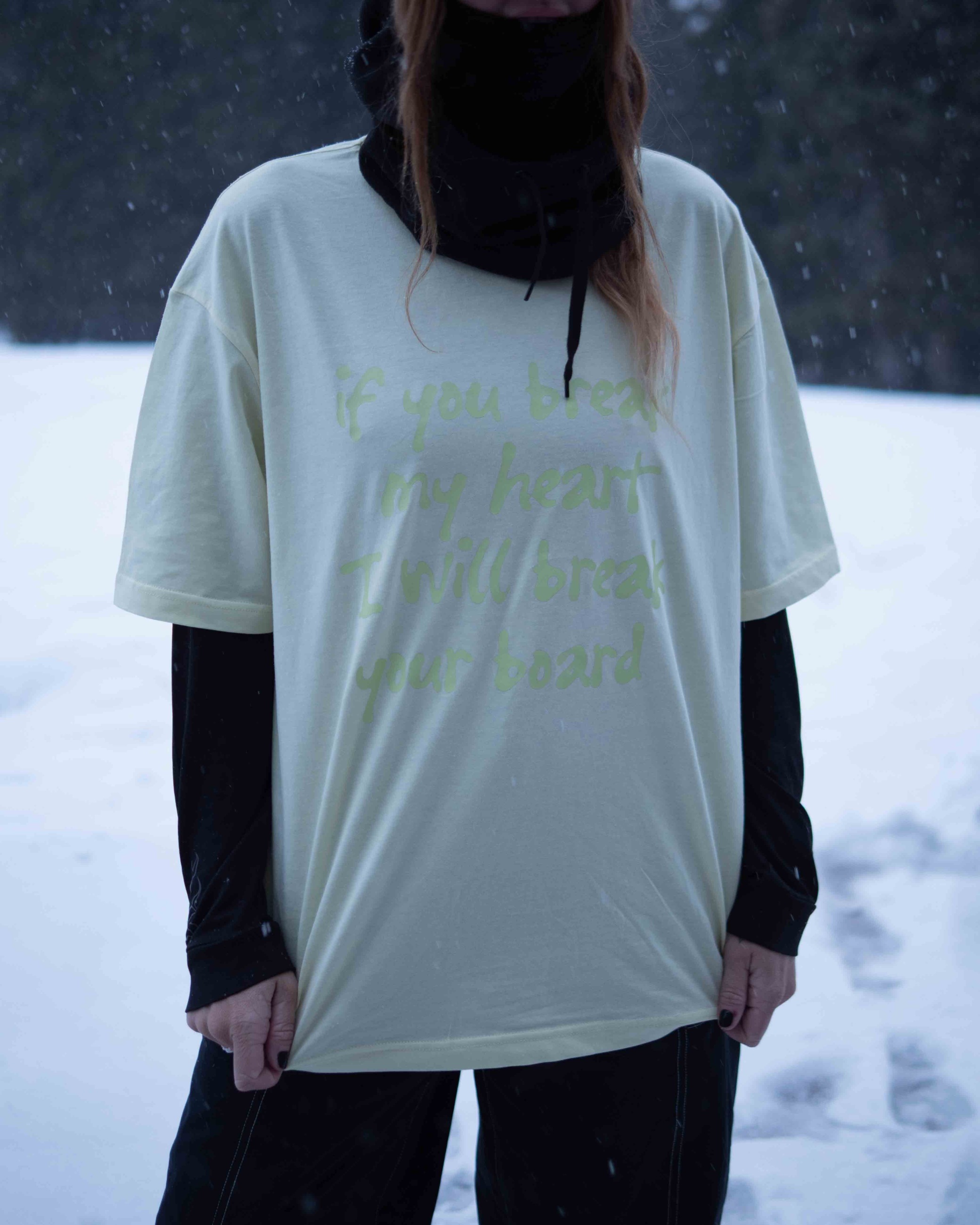 “If you break my heart, I will break your board” matchy triko s naší (tvojí?) NOA QUEEN hoodie. Lehké, jemné triko, jako druhá kůže. My v něm aktuálně žijeme! Na horách jsme ho vrstvily s termo oblečením, ale tahle (trend on 2026) barva ti ozvláštní i casual outfit do města nebo na pláž.