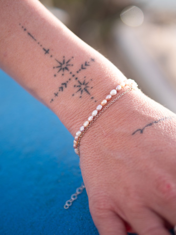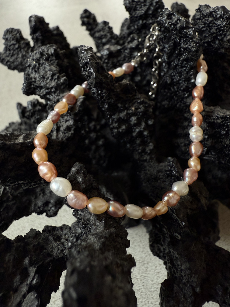 Přírodní sladkovodní říční perličky velikosti 3–4 mm v barokním tvaru – každá z nich je originál, stejně jako ty. Zapínání z nerezové oceli je saltwater proof, takže ideální šperk pro všecny ocena NOA girls! 🌊🏄♀️