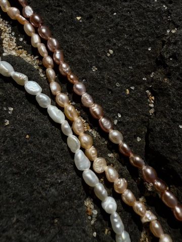 Přírodní sladkovodní říční perličky velikosti 3–4 mm v barokním tvaru – každá z nich je originál, stejně jako ty. Zapínání z nerezové oceli je saltwater proof, takže ideální šperk pro všecny ocena NOA girls! 🌊🏄♀️
