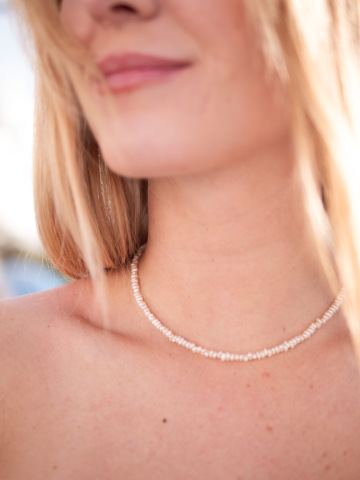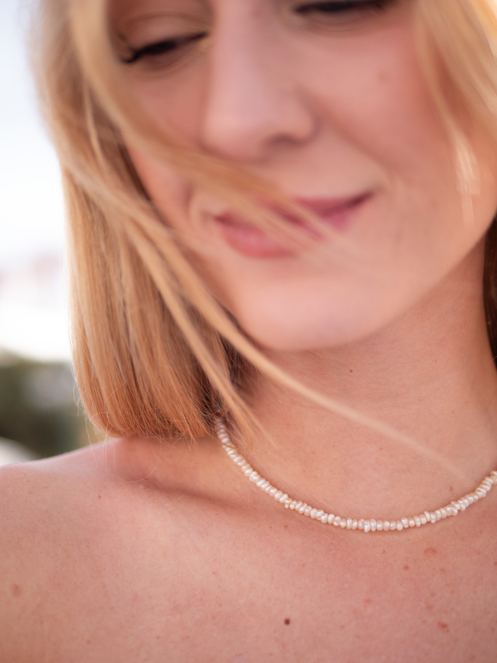 Přírodní sladkovodní říční perličky velikosti 3–4 mm – každá z nich je originál, stejně jako ty. Zapínání z nerezové oceli je saltwater proof, takže ideální šperk pro všecny ocena NOA girls! 🌊🏄♀️
