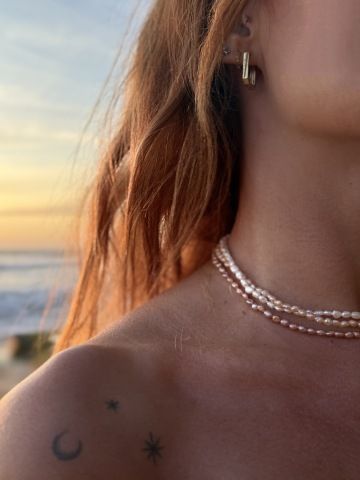 Přírodní sladkovodní říční perličky velikosti 3–4 mm v barokním tvaru – každá z nich je originál, stejně jako ty. Zapínání z nerezové oceli je saltwater proof, takže ideální šperk pro všecny ocena NOA girls! 🌊🏄♀️
