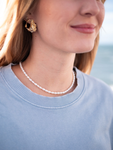Přírodní sladkovodní říční perličky velikosti 3–4 mm v barokním tvaru – každá z nich je originál, stejně jako ty. Zapínání z nerezové oceli je saltwater proof, takže ideální šperk pro všecny ocena NOA girls! 🌊🏄♀️