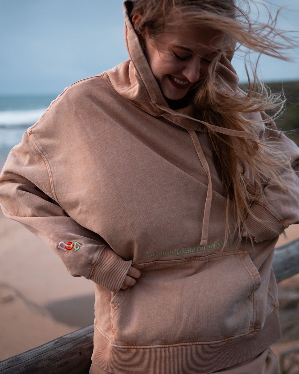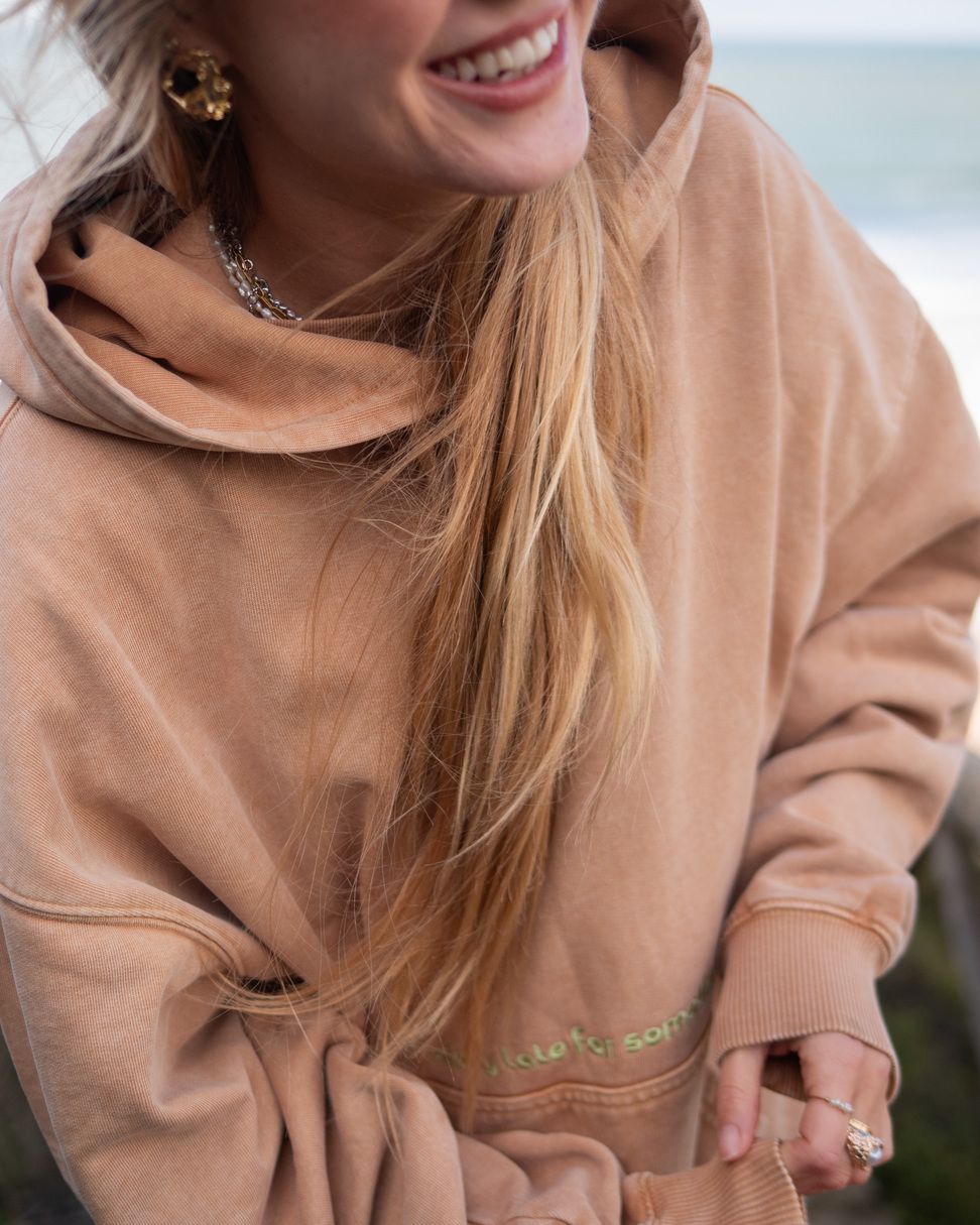 “Late hoodie” je v latté barvě, která se na podzim a v zimě (nejen v nich samozřejmě) hodí do jejich atmosféry. Barva, kterou sladíš raz-dva!
